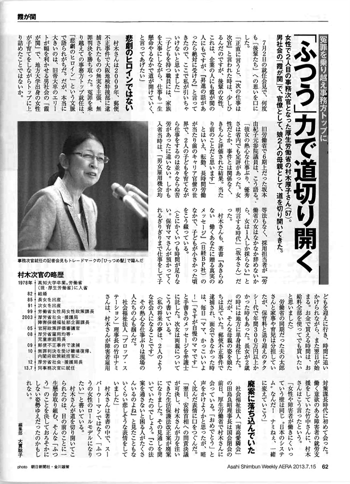 - 「村木厚子さんのこと」ジャーナリスト 元厚生労働省 社会保障審議会委員 小宮英美さん執筆